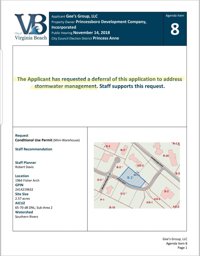 Gee’s Group LLC requested a deferral back on November 14, 2018 in order to, “address stormwater management.”