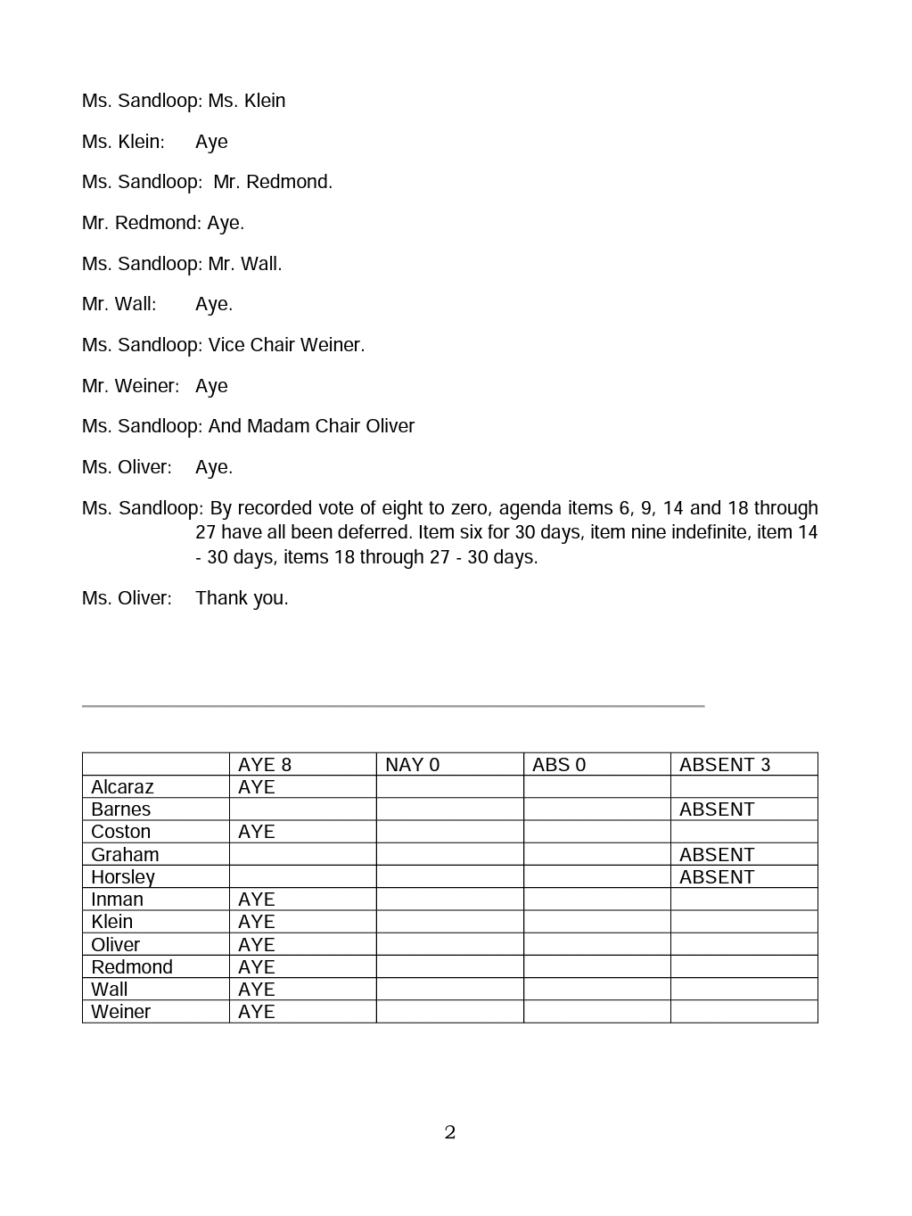 November 4, 2020 – PC deferred